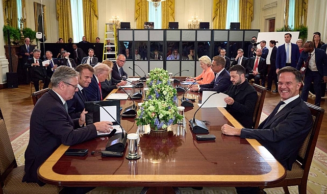 ABD Başkanı Donald Trump, Rusya Devlet Başkanı Vladimir Putin ile Alaska'da görüştükten sonra başkent Washington'da bulunan Beyaz Saray'da Ukrayna Devlet Başkanı Volodimir Zelenski ve Avrupalı liderlerle bir araya geldi.Doğu Salonu'nda yapılan toplantıya, NATO Genel Sekreteri Mark Rutte, Avrupa Birliği (AB) Komisyonu Başkanı Ursula von der Leyen, Fransa Cumhurbaşkanı Emmanuel Macron, İngiltere Başbakanı Keir Starmer, Finlandiya Cumhurbaşkanı Alexander Stubb, İtalya Başbakanı Giorgia Meloni ve Almanya Başbakanı Friedrich Merz de katıldı.