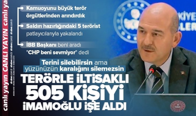 İçişleri Bakanı Süleyman Soylu, İBB'deki terör soruşturmasına yönelik açıklamalarda bulunuyor.İçişleri Bakanı Süleyman Soylu'nun açıklamalarından öne çıkanlar şöyle:Devlet tüm terör örgütleriyle mücadele ediyor. Çok şükür uzun uğraşlar sonucu kamuyu terör örgütlerinden arındırdıkFETÖ ile irtibat halindeki belediyelerde gereğini yerine getirmemiş olsaydık bugün Doğu ve Güneydoğu'nun hali ne olurdu? Biz bu konu hakkında da çok eleştirildikEğer bugün ülkemizde terör örgütleri hareket edemiyorsa Türkiye Cumhuriyetinin iradesindendir. Bu kadar açık ve net"İMAMOĞLU BENİ ARADI"İmamoğlu saygılarını sunarak beni aramıştır. Bana belli bir konuda CHP Genel Merkezi beni zaten sevmiyor, ne olursunuz bana bu konuda yardımcısı olur musunuz? diye bir ricası da olmuştur.Terör örgütü PKK, yıllardır elinde bulundurduğu belediyeler vasıtasıyla dağda etkisiz hale getirilenlerin kardeşlerini, akrabalarını ve yakınlarını belediyelerde işe alıyor. Bakan Soylu'nun açıklamalarından öne çıkan satır başları:5 kişilik bir hücre tespit edildi. Van'daki il emniyet Müdürlüğü marifetiyle bir eylem daha engellenmiş oldu. Bu vesileyle hem istihbarat birimlerimize hem de aynı zamanda terörle mücadele birimlerimize hepinizin huzurunda teşekkür ediyorum.26 Kasım'da burada belediyeleriyle irtibatlı çalışanları aldıkları için İstanbul, Mersin, Adana, İzmir, Ayvalık'la ilgili bir İçişleri Bakanlığı'nca yürütülen soruşturma olduğunu ve bunun tamamlanması halinde dosyaların Yargı'ya gönderileceğini söylemiştim. Buradaki bilgi notlarının her birini de sizlerle paylaşmıştık. Birkaç saat önce İBB Başkanı'nın bu konudaki açıklamaları takip ettik. Elbetteki herkesin kendi hakkını savunma hakkı vardır. Bu doğal bir haktır.