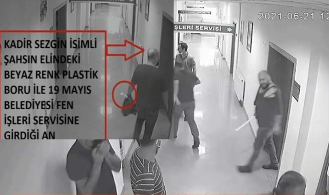Samsun'da inşa edilen 19 Mayıs Devlet Hastanesi’nin eksikliklerini haber yaptığı için müteahhit firmanın çalışanları tarafından belediye binasında doğalgaz borusuyla darp edilen gazeteci İbrahim Akkuş’a yapılan saldırının görüntüleri ortaya çıktı.Samsun’un 19 Mayıs ilçesinde yapılan ve yaklaşık 15 milyon liraya mal olan 40 yataklı devlet hastanesinin eksikliklerini ve müteahhit hatalarını haber yapan Yeniçağ Gazetesi muhabiri İbrahim Akkuş, 21 Haziran’da belediye binasında firma çalışanlarının saldırısına uğramış ve doğalgaz borusuyla darp edilmişti.BORUYU ETEĞE SARIP GETİRMİŞ Saldırganlardan şikayetçi olan gazeteci İbrahim Akkuş’a yapılan saldırının görüntüleri savcılık tarafından incelemeye alındı.Kamera kayıtlarında; Akkuş’un hastaneyle ilgili teknik bilgiler almak için gittiği 19 Mayıs Belediyesi Fen İşleri Müdürlüğüne üç saldırganın aynı araçla geldikleri; birbirlerinden habersizmiş gibi belediye binasına ayrı ayrı girdikleri ve saldırganlardan birinin elinde de eteğe sarılı halde yaklaşık yarım metre uzunluğunda bir plastik boru olduğu görülüyor.ETEK DE DELİL SAYILDIİbrahim Akkuş’un ardından Fen İşlerine giren ve saldırıyı gerçekleştiren saldırgan Kadir S’in, yanında getirdiği eteği Akkuş’a giydirmek istediği öğrenildi. Ancak Akkuş’un biber gazıyla kendini korumaya çalışması üzerine saldırgan S.’in amacını gerçekleştiremediği bildirildi. Saldırgan Kadir S.’in Akkuş’u darp ederken kullandığı boruyla birlikte elindeki eteğin delil olarak alındığı kaydedildi.BİBER GAZI ETKİLİ OLDUKamera kayıtlarında, saldırıya uğrayan Akkuş’un yanındaki biber gazını sıkarak kendisini korumaya çalıştığı; odada bulunan diğer şahıslarla birlikte gazdan etkilenen saldırganın ambulansla hastaneye kaldırıldığı da görülüyor