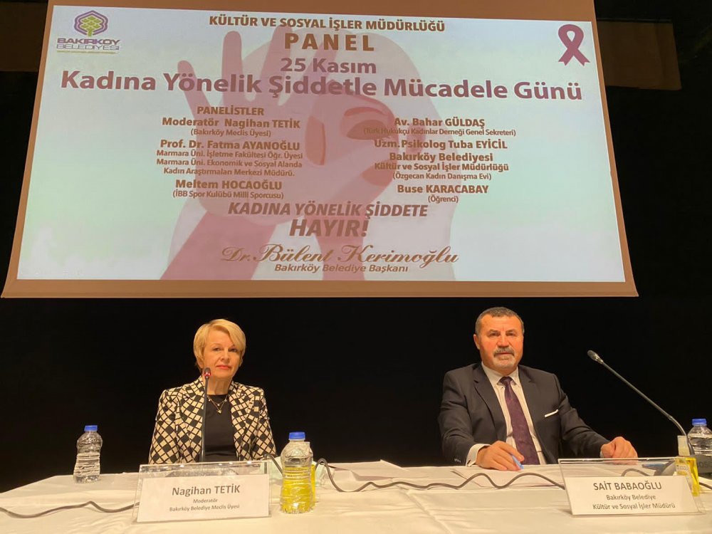 Bakırköy Belediyesi tarafından 25 Kasım Kadına Yönelik Şiddetle Mücadele Günü kapsamında panel düzenlendi. "Kadına Yönelik Şiddete Hayır!" konulu panel, koronavirüs tedbirleri kapsamında Bakırköy Belediyesi Kültür ve Sosyal İşler Müdürlüğü tarafından, Bakırköy Leyla Gencer Opera ve Sanat Merkezi'nde gerçekleştirildi ve belediyenin sosyal medya hesaplarından canlı olarak yayınlandı.