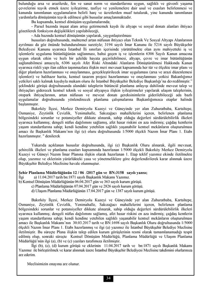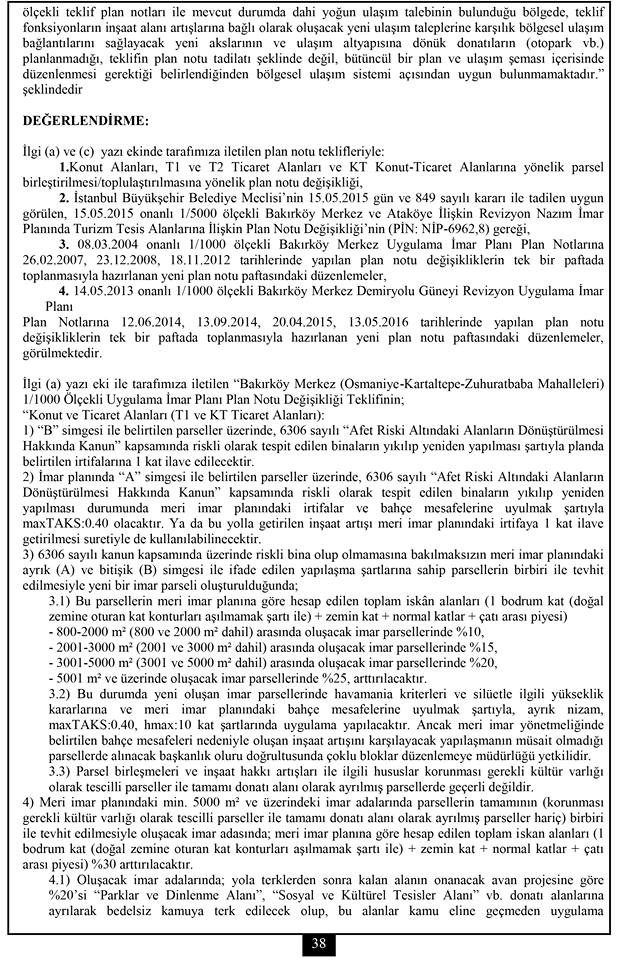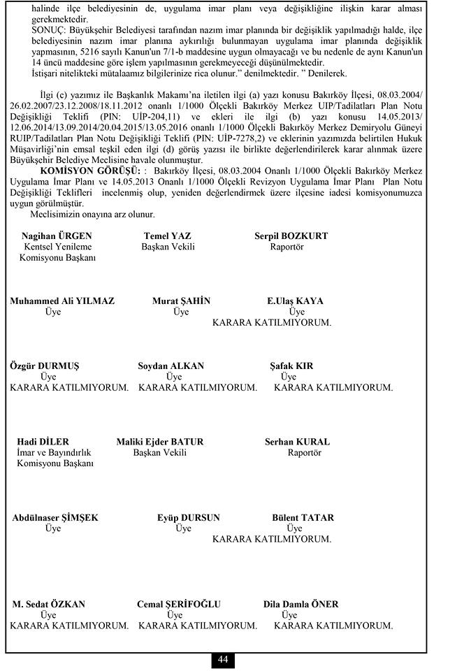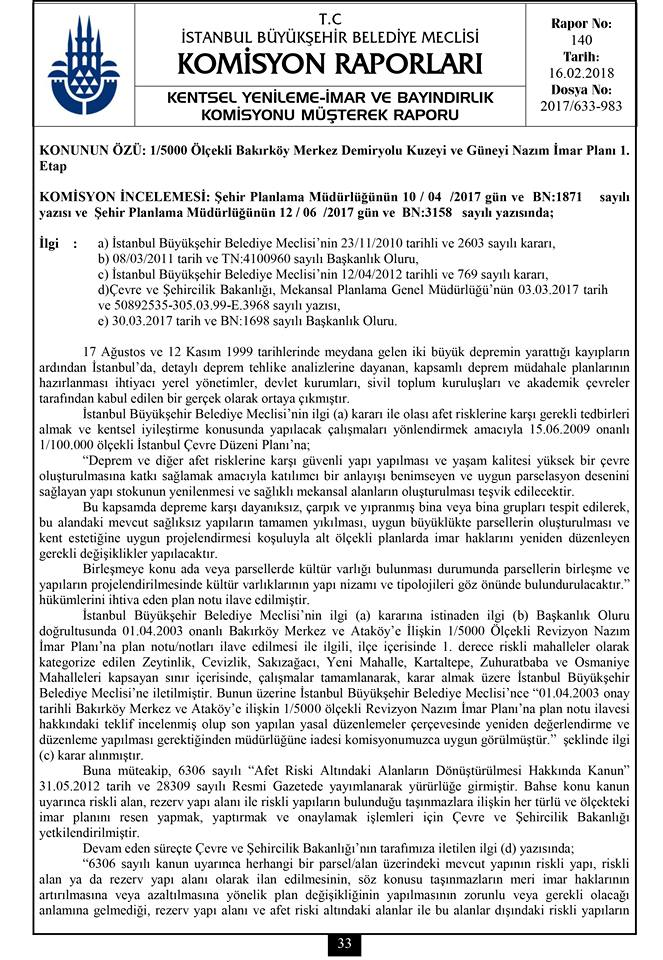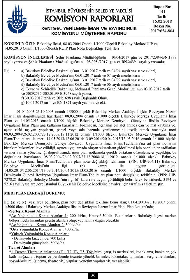 İBB Meclis 16.02.2018 tarihinde Bakırköy Belediyesinin gönderdiği Kentsel Dönüşüm ile ilgili planlara izin vermedi.1. Derece Deprem Bölgesi ,Bakırköylüler Sahillere gökdelenlere izin veriliyor,Toki kendisi artış yapıyor Floryadaki Galatasaray tesislerinde 1/5 emsal artışı yapabiliyor,Floryada Şükrü Balcı Polis okulunun arazisinde 2 emsal artışı yapıyor,Bakırköy Ruh ve Sinir Hastalıkları arazisine 1/5 emsal artışı yapabiliyorlar ama Bakırköy halkına ait yerlere imar izni verilmesi sadece siyasidir diyen Bakırköylüler biz öldükten sonra mı Kentsel dönüşüm yapılacak diye soruyorlar?