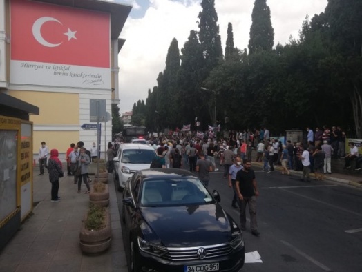 Burada kapıları tekmeleyen grup tekrar polis ekipleri tarafından uzaklaştırıldı.