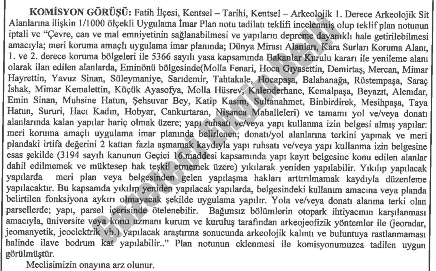 Ergün Turan’ın kendi döneminde gerçekleşen tarihi karar bir nevi Fatih’te gizli imar affını da beraberinde getirdi. CHP Grubunun Kasım ayında gündeme taşıdığı “bu güne kadar sadece 70 bina faydalanmış!” söylemi ile dikkatler plan notuna çevrilmişti.