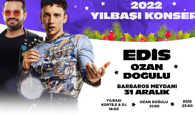 Konser etkinlikleri kapsamında saat 21.00’de Ozan Doğulu DJ performansını sergileyecek. Saatler 23.00’ü gösterdiğinde ise pop müziğin sevilen ismi Edis konser alanını dolduran tüm vatandaşlar için sahnede olacak.Program18.00: Yılbaşı Korteji, Mp3 Meltem Özkan & Kerem Kaya DJ Performansı21.00: Ozan Doğulu Konseri23.00: Edis KonseriDetaylar• Konser etkinliklerine katılım ücretsizdir.