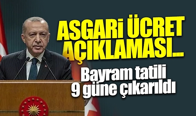 Kabine toplantısı sonrası Cumhurbaşkanı Erdoğan canlı yayında açıklamalarda bulundu. Erdoğan; "Asgari ücret için talimat verdim! En kısa sürede müjdeli haberi vereceğiz. "dedi… Erdoğan ayrıca Kurban Bayramı tatilinin 9 güne çıkarıldığını açıkladı....