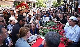 BABALARINA TABUTU BAŞINDA VEDA ETTİLERDiğer kızının ise küçük yaştaki çocuğuyla birlikte tabutun başında durduğu ve başsağlığı dileyen kalabalığın arasında yer aldığı görüldü.Küçük çocuk, elinde bir oyuncak tutarken annesinin omzuna yaslandı.Kızları, babalarına burada gözyaşları içerisinde veda etti.