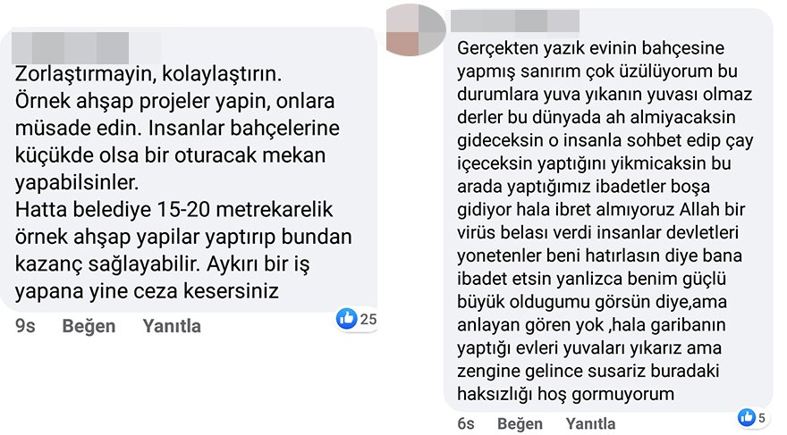“MİLLİ SERVET BÖYLE YOK OLUYOR” Belediyenin sosyal medyadan yıkımın duyurusunu yaptığı paylaşımına çok sayıda vatandaş tepki gösterdi. Bir vatandaşın, “Kapitalizm gölgesini satamadığı ağacı kesermiş. Milli servet böyle yok oluyor. Teşvik edeceklerine yok ediyorlar” ifadeleri dikkat çekti.
