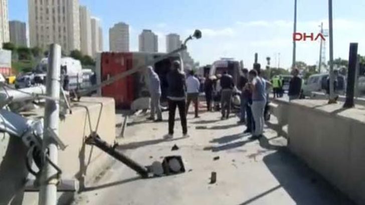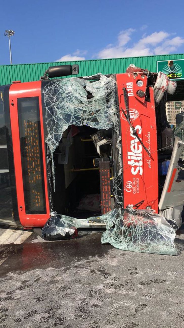 İstanbul Bahçeşehir'de çift katlı bir halk otobüsünün devrilmesi sonucu çok sayıda kişinin yaralandığı bildiriliyor. Olay yerine ambulanslar sevkedildi.2 / 19Halk otobüsü gişelere çarptı! İşte ilk kareler...