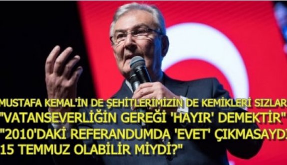 CHP Antalya Milletvekili Deniz Baykal Çorlu'da konuştu. Baykal 'hayır' demenin vatanseverliğin bir gereği olduğunu belirterek "Mustafa Kemal'in de şehitlerimizin de kemikleri sızlar" dedi.
