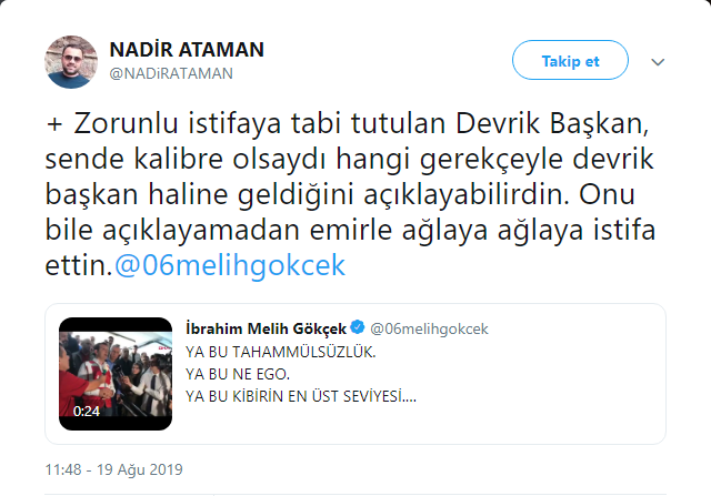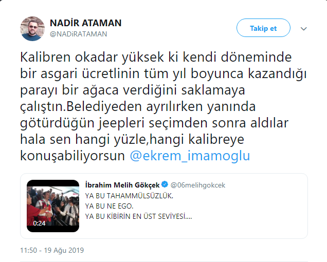Gündem Yayınlanma: 19 Ağustos 2019 - 22:33 Güncelleme: 19 Ağustos 2019 - 23:46 CHP'li Nadir Ataman'dan Sert Cevap Gündem 19 Ağustos 2019 - 22:33 Güncelleme: 19 Ağustos 2019 - 23:46 TAKİP ET Yazdır A Büyüt A Küçült CHP'li Nadir Ataman'dan Melih Gökçek'in Tweetine Sert Cevap İlginizi Çekebilir ABD, Esenyurt'taki tekstil firmasını kara listeye aldı! SON DAKİKA: WhatsApp’ta Gizlilik Alarmı! Kapalı Grup Paylaşımı Tutuklamayla Sonuçlandı AZİZ İHSAN AKTAŞ DAVASINDA 5 İSİM TAHLİYE EDİLDİ Eski bakanın şirketine kartel cezası Son Haberler ABD, Esenyurt'taki tekstil firmasını kara listeye aldı! CHP’li Ataşehir Belediyesi’ndeki kirli çarkta ‘Ekrem İmamoğlu’... SON DAKİKA: WhatsApp’ta Gizlilik Alarmı! Kapalı Grup Paylaşımı... BEŞİKTAŞ’TA 23 NİSAN DÜNYA BARIŞ PARKI’NDA KUTLANACAK AZİZ İHSAN AKTAŞ DAVASINDA 5 İSİM TAHLİYE EDİLDİ CHP'li Özgür Özel: AKP iktidarı yine faşizmi seçti CHP'li Özgür Özel: AKP iktidarı yine faşizmi seçti