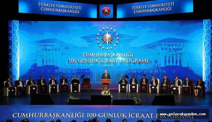 Cumhurbaşkanı Recep Tayyip Erdoğan, kabinesinin 100 günlük eylem programını 3 Ağustos 2018 günü açıkladı.Beştepe Millet Kültür ve Kongre Merkezi’nde düzenlenen toplantıda tanıtılan icraat programının süresi doldu, ikincisinin bu hafta içinde açıklanması bekleniyor.Bakanlıkların ilk 100 gün içinde gerçekleştirilemeyen vaatleri şöyle:PROJELER İHALE BEKLİYOR– Yıkımı tamamlanan “İstanbul Atatürk Kültür Merkezi” yapım ihalesi sonuçlandırılamadı– Kanal İstanbul ve 3 Katlı Büyük İstanbul Tüneli Projesi'nin ihale ilanına çıkılamadı– Er ve erbaşların eş, çocuk, ana ile babalarının da sağlık hizmetlerinden faydalandırılmasını saylayacak yasal düzenleme çıkarılmadıEMEKLİLİLER ZAM ALAMADI– Nafaka ödeme sistemi adil hale getirilemedi– Hayvanlara karşı işlenen öldürme ve eziyet fiillerine karşı caydırıcı tedbir ve cezai yaptırımlar yasalaşmadı.– 150 bin SSK ve Bağ-Kur emeklisine seyyanen zam yapılıp maaşları 1000 liraya tamamlanmadı.– Şehit yakını ve gazilere çıkarılan SGK borçları silinmediGAYRİMENKUL SEKTÖRÜNÜN BANKASI GECİKTİ– Emlak Bankası faaliyete başlamadı– 5 bin kamu konutunun satışı tamamlanamadı– Taşınmaz Değerleme Sisteminin kurulmadı– Türkiye Uzay Ajansı kurulamadı– Gökmen Uzay Havacılık Eğitim Merkezi açılamadı– 6 bin kilometre bisiklet ve yeşil yürüyüş yolu yapılmadı