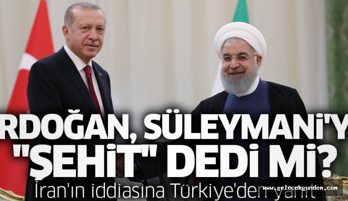 Cumhurbaşkanı Recep Tayyip Erdoğan'ın, İran Cumhurbaşkanı Hasan Ruhani ile yaptığı son dakika telefon görüşmesinde Kasım Süleymani için "şehit" ifadesi kullandığı iddialarının gerçek olmadığı ortaya çıktı.İran'ın Ankara Büyükelçiliği'nin resmi Twitter hesabından iki liderin görüşmesine dair detayları paylaştığı açıklama, TRT World'e konuşan üst düzey bir Türk yetkili tarafından kesin bir dille yalanlandı.Üst düzey yetkili, Cumhurbaşkanı Erdoğan'ın, Ruhani ile yaptığı görüşmede ABD'nin füze saldırısı ile ölen Kasım Süleymani için "şehit" ifadesini kullanmadığını belirtti.