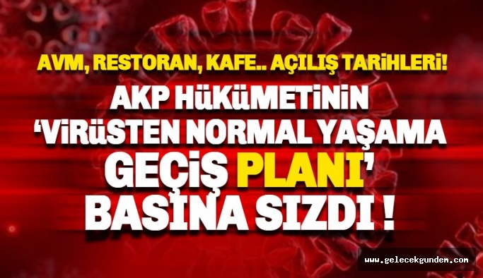 Sosyal medya hesaplarında paylaşılan ve Bilim Kurulu tarafından hazırlanarak ve AKP hükümetine sunulduğu öne sürülen taslak önerinin detayları şöyle:"1-3 Mayıs: Sokağa çıkma yasağı 9-10 Mayıs: Sokağa çıkma yasağı11 Mayıs: AVM’lerin çocuk alanları ve restoranlar hariç açılması16-19 Mayıs: Sokağa çıkma yasağı20 Mayıs: Küçük işletmelerin açılması23-26 Mayıs: Sokağa çıkma yasağı27 Mayıs: Sokağa çıkma yasaklarının sonu YENİ NORMALE GEÇİŞ5 Haziran: Liglerin seyircisiz başlatılması