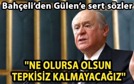 MHP lider Devlet Bahçeli partisinin grup toplantısında konuştu.Bahçeli'nin açıklamalarından satırbaşları:Türkiye devleti, milleti ile bölünmez bir bütündür. Türkiye yoğunlaşmış risk altındadır.Postal sesleri demokrasinin sesini bastıramayacaktır. Türk milleti iktidar değişiminin nasıl olacağını yıllar önce karar vermiştir. Seçimle gelen seçimle gidecektirDarbe denemeleri, darbeci hevesler, cunta arayış ve çabaları ülkeye yapılacak en büyük kötülüktür. Erken kalkanın darbe yaptığı dönemler artık geride kalmıştır. Kalmak zorundadır. Türkiye askeri darbelerin ceremesini çok çekmiştir.''NE OLURSA OLSUN TEPKİSİZ KALMAYACAĞIZ''Türkiye'nin tehlikenin eşiğinde olduğunu anladık. Darbe sırasında Başbakan'ı aradık. MHP bedeli ne olursa olsun bu girişimlere tepkisiz kalmayacaktır.TSK'ya mevzilenmiş dar bir kadro ülke yönetimini ele geçirmeye kalkışmıştır. Polislerimizi şehit edenler TSK'ya sızmış namussuz ve hain darbecilerden başkası değildir.Bu firavun artıkları, üniformalı teröristler, milletin kalbine bombayı fırlatmışlar, 79 milyonun korku dolu saatler geçirmesine sebep olmuşlardır. Türkiye'nin kurum ve kuruluşlarına saldırıp, polisleri şehit edenlerin PKK veya IŞİD'den ne farkı vardır.''PENSİLVANYA'DAKİ ÇÜRÜMÜŞ...''Bunların Pensilvanya'daki çürümüşten emir alan kişiler olmaları meselenin dikkat çekici yönüdür. Gülen cemaati okyanus ötesi bir ağ kurmuştur. Kritik görevlere paralel yapının üyeleri getirilmiştir.Dedim ki okyanus ötesi tehdittir. Dediler ki Hocaefendi işi gücü bırakacak Bahçeli ile mi uğraşacak? Daha önce uyarmıştır.Hayatını kaybetmiş bir mehmetçiğin başında bozkurt işaretiyle poz veren şerefsiz bulunup darbecilerle birlikte cezalandırılmalıdır. Bu şerefsiz doğduğuna pişman edilmelidir.