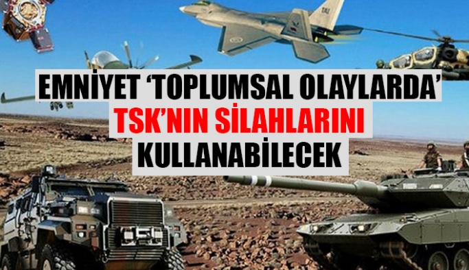Resmi gazetede yayımlanan madde ile toplumsal olaylara müdahale kapsamında TSK, MİT ve Emniyet Taşınır Mal Yönetmeliği’nde değişiklik yapıldı. Değişikliğe göre “terör ve toplumsal olaylar”da TSK’ya ait silah ve taşıtlar, bakan onayıyla Emniyet ve MİT’e devredilebilecek.