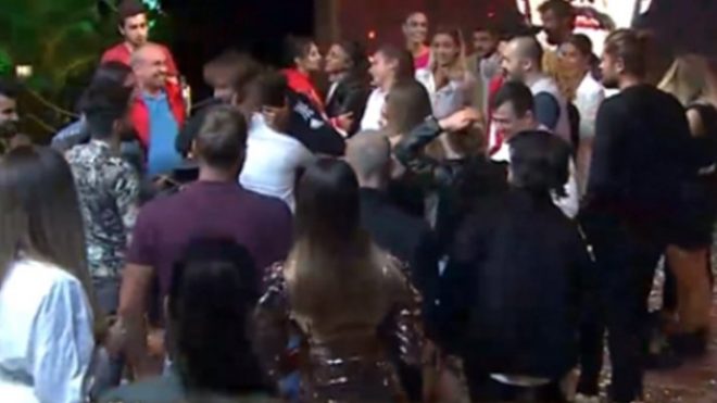 Corona virüsü vakasının 200 bini aştığı, ölü sayısının 5 bin 382 olduğu Türkiye’de Sağlık Bakanı Fahrettin Koca’nın tüm uyarılarına rağmen maskesiz ve sosyal mesafesiz görüntüler gelmeye devam ediyor.Dün akşam sunuculuğunu Acun Ilıcalı’nın yaptığı Survivor 2020 finalinde yarışmacıların ve ailelerinin de bulunduğu alanda hiç kimsenin maske takmaması ve yan yana olması sosyal medyada büyük tepki çekti.İŞTE O GÖRÜNTÜLER:
