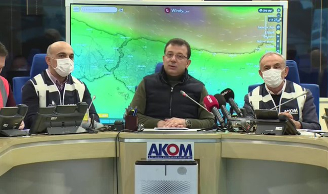 İBB Başkanı Ekrem İmamoğlu, son 30 yılın en soğuk günlerini ve kar yağışını gören kentte, karla mücadele çalışmalarını, Afet Koordinasyon Merkezi'nden (AKOM) yönetiyor. Birkaç saat aralıklarla kar yağışı konusunda açıklama yapan İmamoğlu, Bakırköy Belediye Başkanı Bülent Kerimoğlu, Küçükçekmece Belediye Başkanı Kemal Çebi ile birlikte İstanbullulara uyarılarda bulundu.