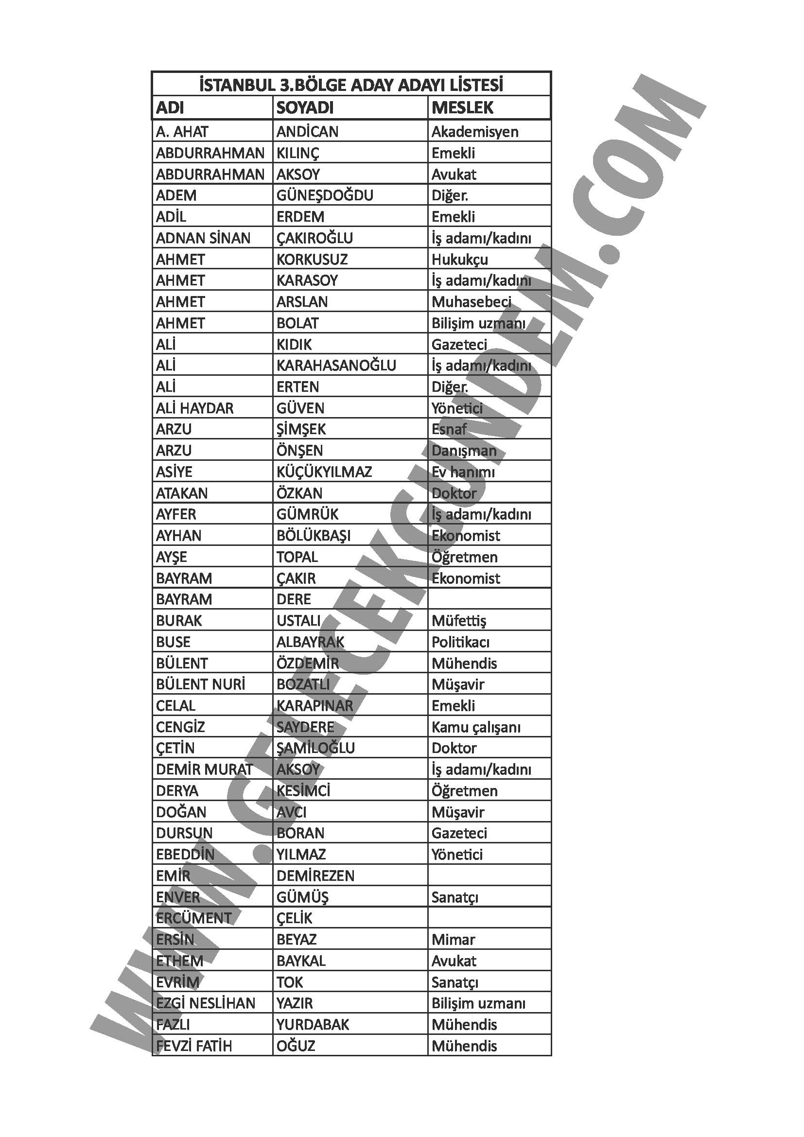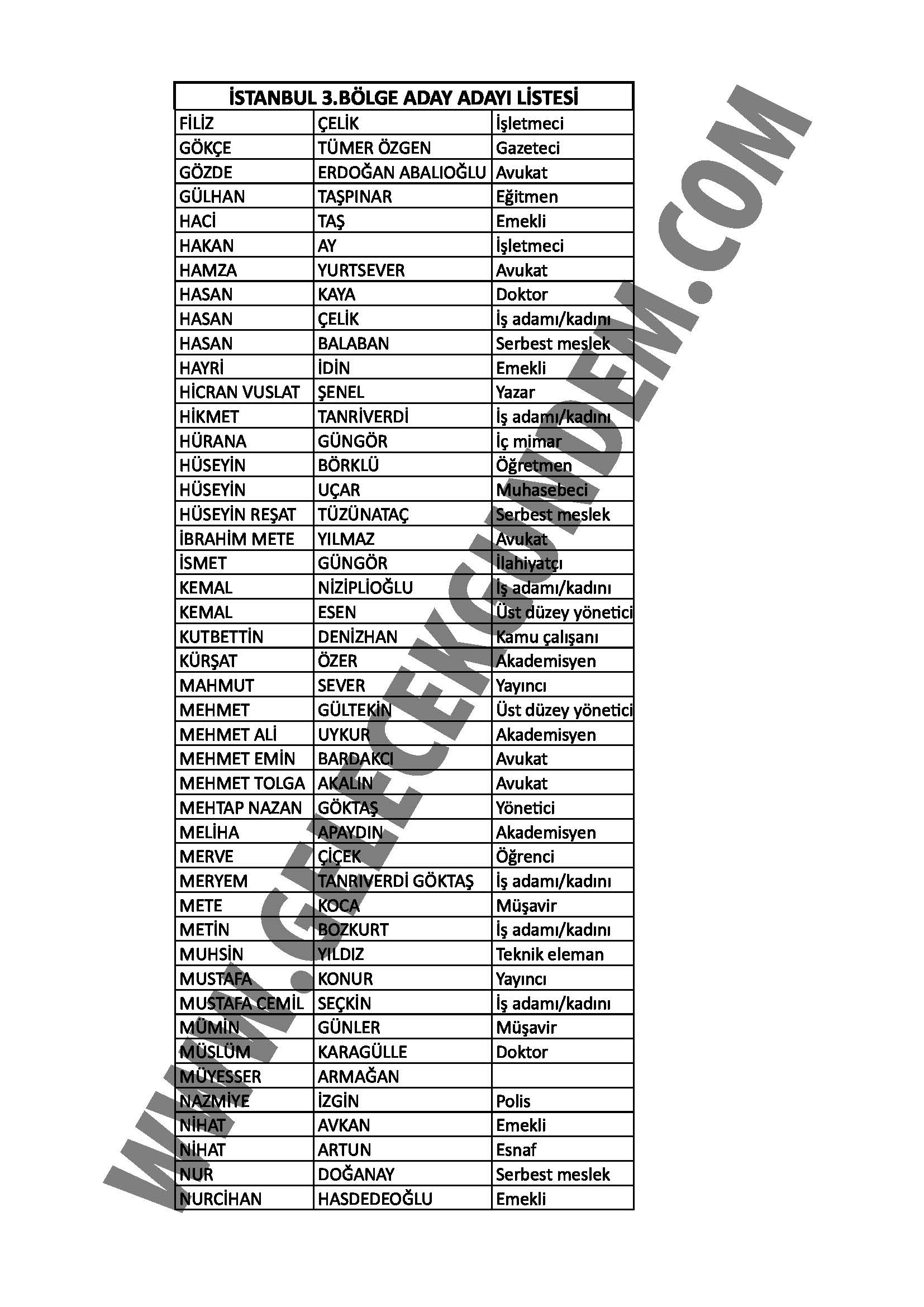 İstanbul seçim bölgelerinde IYI Parti milletvekili aday adayı listesinde kimler var?