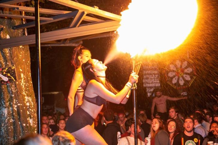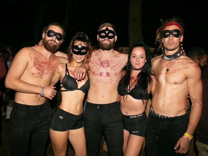 Öte yandan bu çılgın festivalde, seksi dansçılar ateş dansı yaparken, alkol ve uyuşturucu su gibi akıyor.