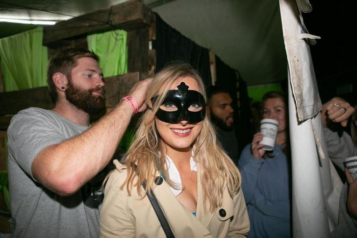 Bu çadıra özel davetiye olmadan girmek imkansız. Ayrıca katılımcılar, 90'ların kült filmi 'Gözü Tamamen kapalı' filmindeki gibi maske takmak zorunda...Bir başka noktada ise öpüşme kabini yer alıyor.