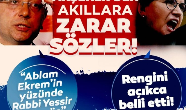 "EKREM KARDEŞİMİN YÜZÜNDE RABBİ YESSİR GÖRDÜM"Programda şaşkınlık yaratan açıklamalarda bulunan Meral Akşener, "Benim ablam 75 yaşında dindar bir kadın. Ablam AK Parti bünyesindeki dindar kadınlarla da beraber olan biri.Ablam bana 'Ekrem Kardeşimin yüzünde Rabbi Yessir gördüm' dedi. Arkadaşlarını sordum, onlar da sempati duymuşlar." dedi.