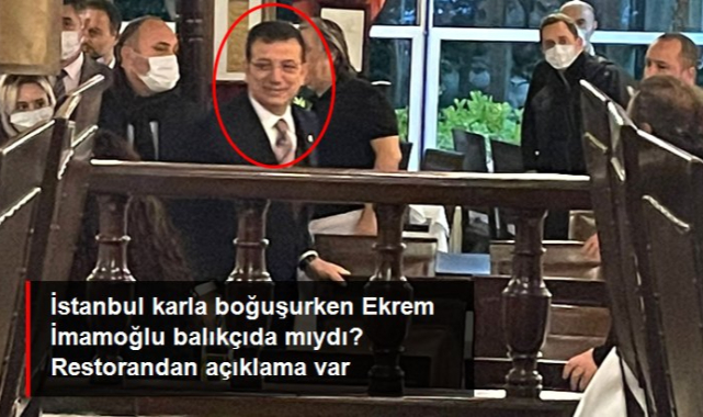 Çeşitli kaynaklar karla mücadele çalışmaları sürerken İBB Başkanı Ekrem İmamoğlu'nun İstanbul Sarıyer'de bir balık restoranında misafirleriyle yemek yediğini iddia ederek görüntü paylaştı.