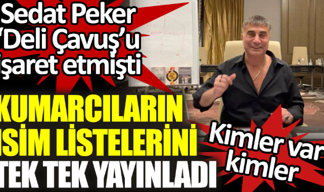 Sedat Peker'in işaret ettiği Deli Çavuş isimli hesap, 2.5 milyar dolarlık kumar listelerini yayınlamaya başladıSuç örgütü lideri olduğu iddiasıyla hakkında yakalama kararı bulunan Sedat Peker'in "kumarcıların" isimlerini yayınlayak kişi olarak işaret ettiği Deli Çavuş listeleri yayınlamaya başladı.