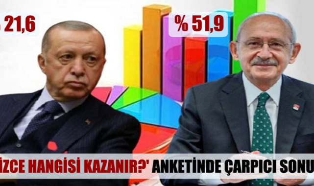 Bugün Cumhurbaşkanlığı seçimi yapılacak olsa ve son turda Recep Tayyip Erdoğan ile karşısında Kemal Kılıçdaroğlu aday olsa sizce hangisi kazanır ve siz kimin kazanmasını istersiniz? -RECEP TAYYİP ERDOĞANSizce hangisi kazanır?: Yüzde 21,6Kimin kazanmasını istersiniz?: Yüzde %14,7-KEMAL KILIÇDAROĞLUSizce hangisi kazanır?: Yüzde 51,9Kimin kazanmasını istersiniz?: Yüzde 51,8Kararsız, cevap vermeyenler: Yüzde 26,5 / Yüzde 33,5