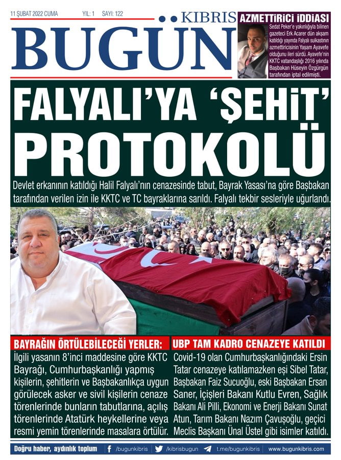 Kıbrıs'ın devlet protokolü, sabıka kaydını bildikleri halde Falyalı'nın cenazesinde saf tuttu.Falyalı'nın UBP'yi desteklediği biliniyor.